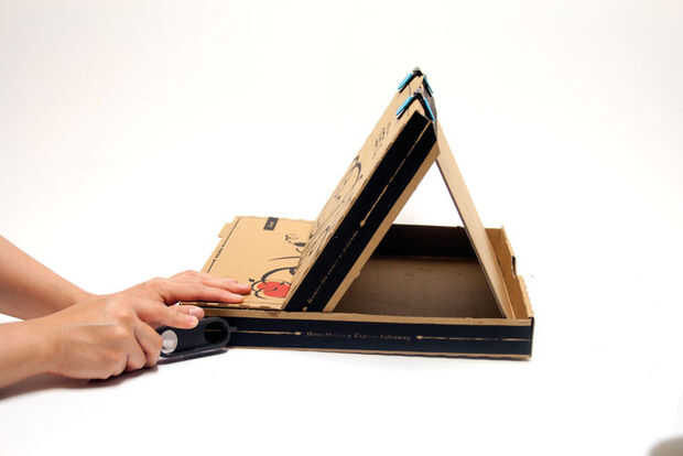 no tirar cajas de pizza, hacerlos en los aeroplanos.Lo que usted necesita:1 + pizza caja/cajas (con manchas de grasa como pocos como sea posible)1 llavero (cuadrangular metal thingy)Tijeras (preferiblemente afiladas y grandes)Cinta (conducto, negra,