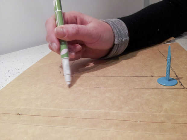 Usar el cartón de desecho para hacer un divisor. Dibuja alrededor del lado de la caja de herramientas para garantizar que la Plaza es del tamaño adecuado. Usando un Makedo nuevo clip para medir, dibujar dos lengüetas en los lados de la Plaza.