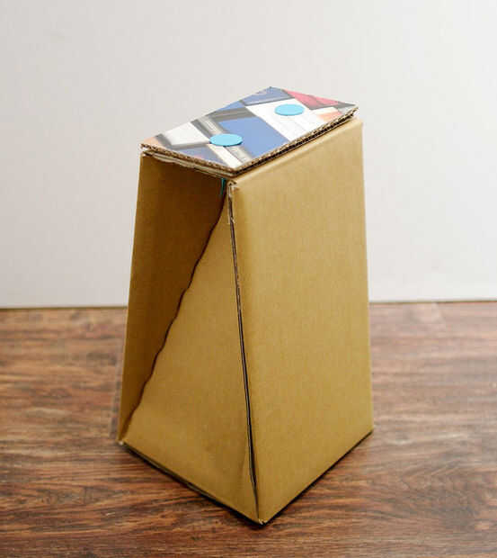 Su taburete portátil está listo para ser probado. Crear diversos tamaños, patrones y colores con diferentes cajas encontradas. Compartir y subir tu creación a mymakedo.com.