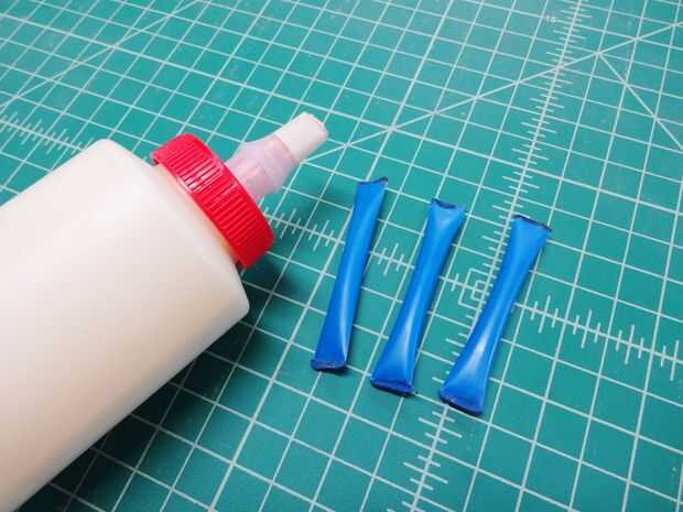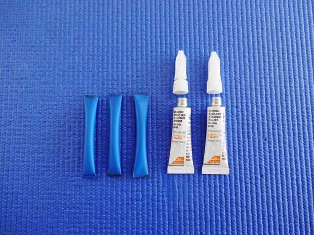 En este compartimiento incluí dos tubos de pegamento super básico y tres paquetes de paja llenos de pegamento de madera.