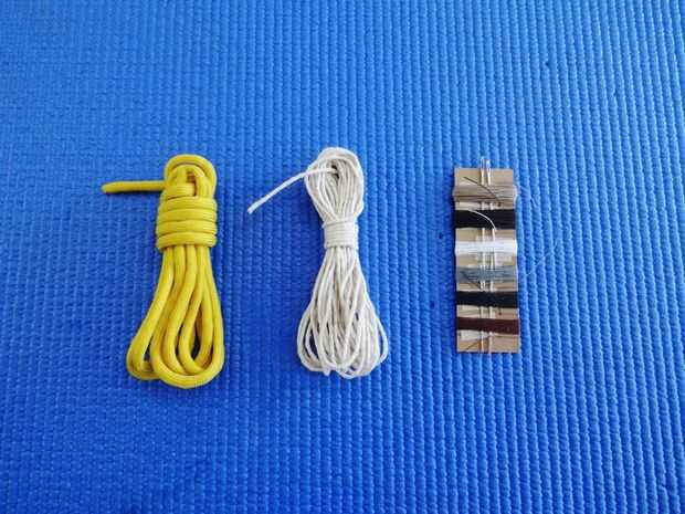 En este compartimiento tengo 10 pies de paracord, 20 pies de cordón de algodón fino y un costurero casero simple.