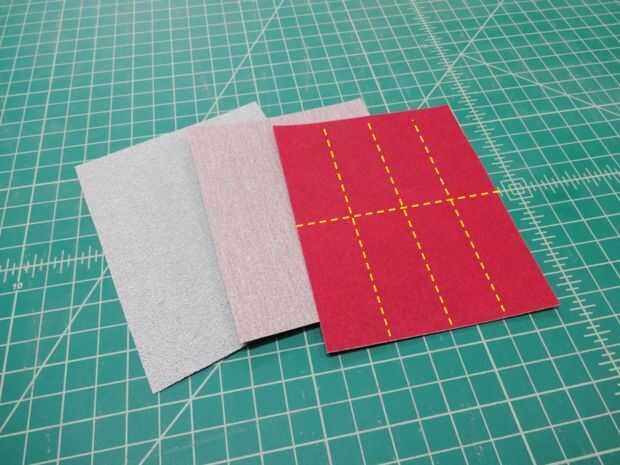 Para el papel de lija, utilicé un viejo par de tijeras para cortar hojas cuartas de 60, 150 y 220 granos en 8 secciones.