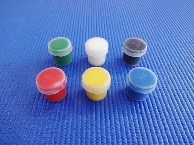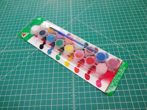 Quería incluir algunas pequeñas tinas de pintura artesanal a base de agua.