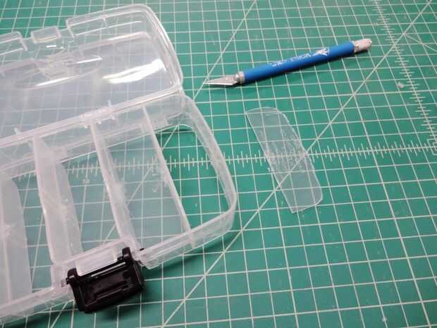 Sin embargo, con el fin de que encajen, realmente tuve que modificar aún más el caso. Anotó cuidadosamente el plástico que separa dos compartimentos de extremo con un cuchillo de la manía, apareció el pedazo hacia fuera y luego había ajustado a cualquier bits restantes de plástico.