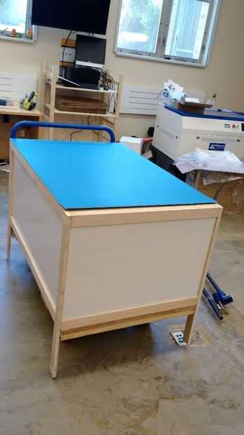 Os adjunto también una regleta en el interior de la cesta de debajo del estante portátil para conectar la cortadora portátil y camafeo. Si está usando la plataforma para estos u otros artículos que requieren energía, esto es recomendable.