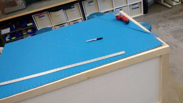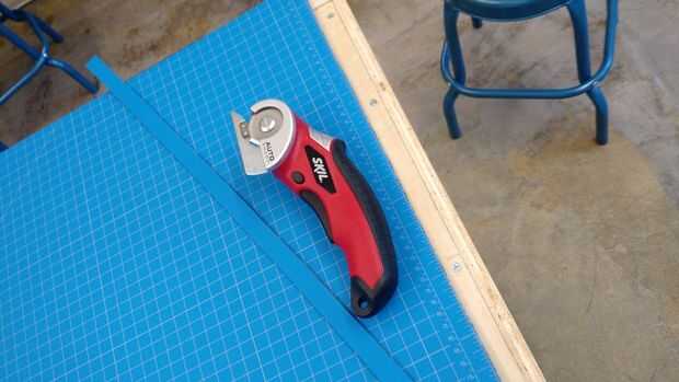 1. Utilice un borde recto y un cortador rotatorio eléctrico para cortar la almohadilla de corte auto-sanación para encajar la parte superior de la mesa de trabajo.