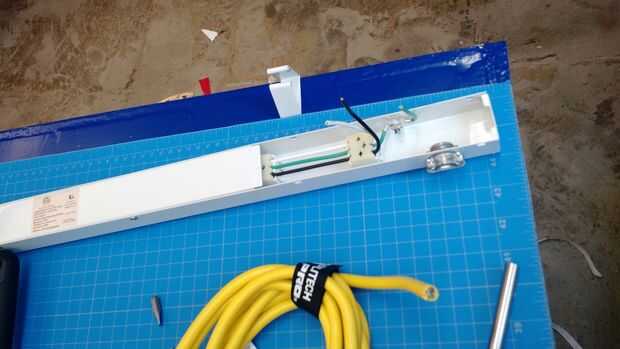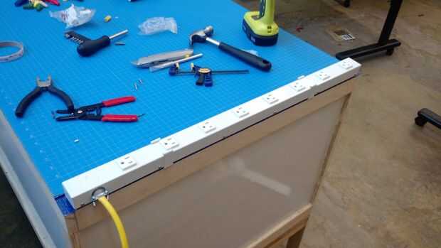 4. alambre (si no ya conectado) y fije la enchufes al frente de la superficie de trabajo. Fije una cuña de barco al riel frontal para envolver el cable de alimentación.