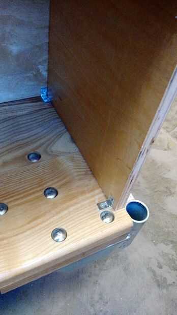 El extremo abierto (hoja bienes de almacenamiento) debe estar alineado con el extremo de la manija del carro. Habrá un espacio en el otro extremo para tener en cuenta para el almacenamiento de herramientas y suministros montado en la pared frontal del carro.