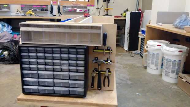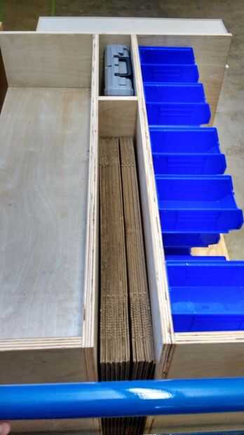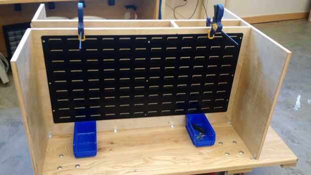 1. utilice tirafondos para fijar bin caja rack al carrito. Monte lo suficientemente alto como para tener en cuenta la altura de los contenedores que se va a utilizar. Utilice abrazaderas para sujetar en su lugar al conectarlo.