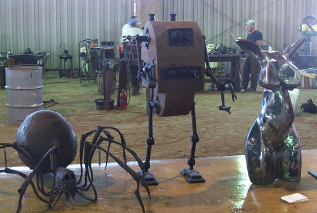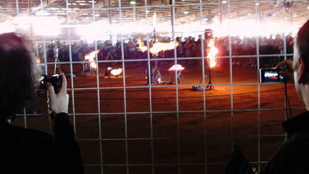Compruebe hacia fuera el arte de la suciedad, la metalistería, los coches eléctricos y el espectáculo de fuego.