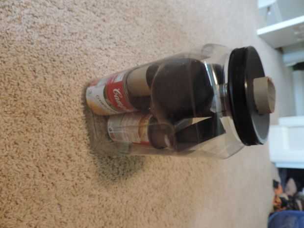 Paso 2: Llene el contenedor plástico con cosas pesadas para apoyar la grúa
