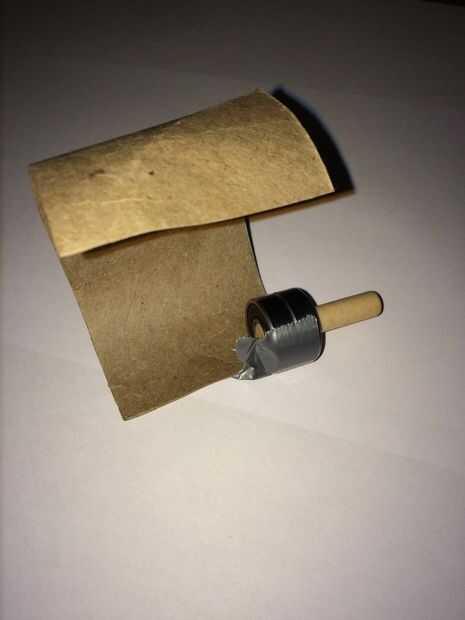 Cortar una porción del rollo vacío de papel toalla y luego la corte en el costado. 2 rodamientos de Skate con un pequeño eje en ellos cerca de un borde de la cinta. Luego Envuelva bien el rollo a su alrededor y cinta hacia abajo.