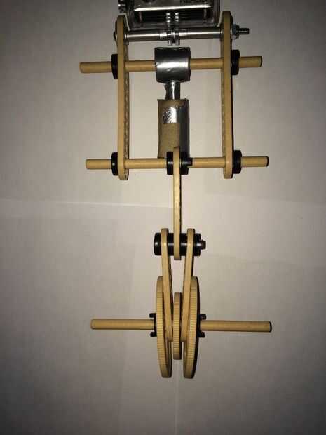 A continuación añadir las piezas restantes a la Asamblea como se muestra en la imagen para actuar como un contrapeso. Piezas se pueden ajustar, añadir o quitar para lograr el equilibrio perfecto y por lo tanto más suave movimiento. Esto es donde se puede hacer experimentando! Por ejemplo, intente utilizar los tapacubos como bloqueado y desbloqueado a los conectores para ver cómo afecta a la estabilidad. También intente utilizar diferentes piezas que pesan diferente. El objetivo es el centro de la masa del sistema entero tan cerca de los rodamientos como sea posible. ¡ Disfrute!
