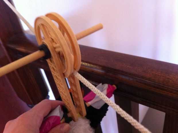 Utilizando el conjunto de malacates del kit Maker Studio de ThinkFun construí un tranvía que pequeños objetos desde un extremo hasta el otro extremo elevado. Quería utilizar sin herramientas y sólo hogar cosas por lo que cualquier niño podría constru