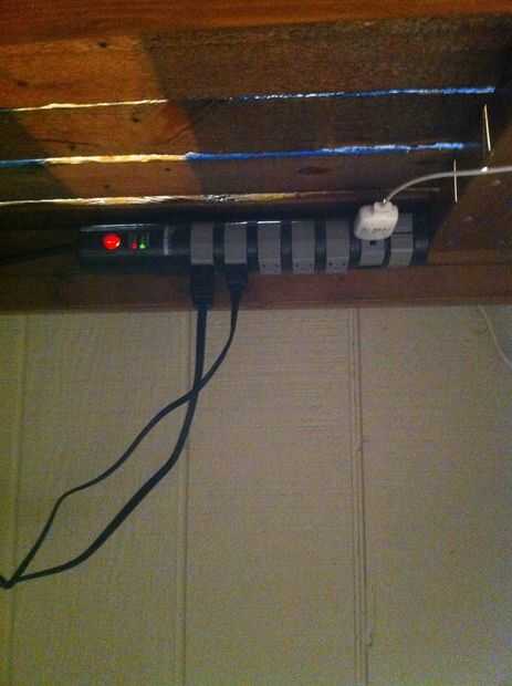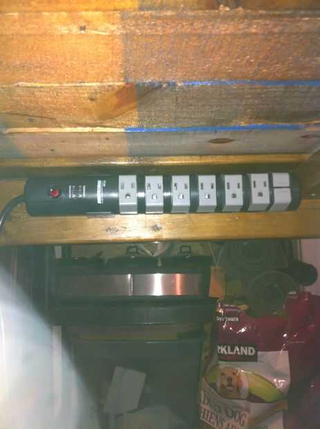 Aseguró una barra de potencia de 8 salida en la parte inferior de la tabla con dos tornillos para madera así.