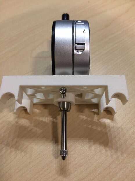 La parte se montará en los rieles superiores y dado que el calibre es resorte, el montaje tiene que ser magnético. Tratar de presionado con la mano para hacer una medición no funciona como de la curva los rieles siempre tan levemente, atornillar para arriba sus medidas.