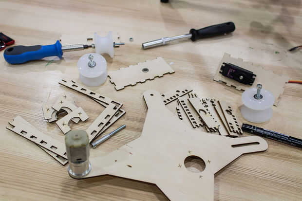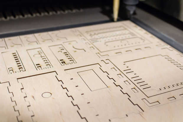 La mayoría de las partes fueron cortada en un cortador láser - una de las ventajas de hacer todo en un makerspace.