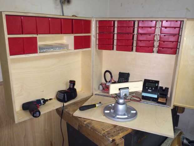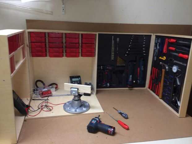Esta es la situación que estoy ahora, yo vivo en un apartamento pequeño y echo mucho de menos mi antiguo taller casero donde tenía espacio para varios bancos de trabajo y mucho espacio de almacenamiento. En el apartamento de que mi taller es la sala de estar, piezas de repuesto y proyectos escondidos lejos en el armario, y herramientas se almacenan en cualquier lugar puedo encontrar habitación. Lo peor es que ahora estoy trabajando en proyectos en varios lugares: en el sótano o el estacionamiento de mi edificio, en las tiendas de amigos, o en mi espacio de fabricante local que es unos 40 minutos en coche. Como resultado de ello el maletero de mi coche a veces sirve como un espacio de taller y almacenaje temporal.