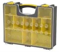 Otra unidad de almacenamiento, que he estado usando durante muchos años es el Organizador profesional de Stanley que está ampliamente disponible y que incluso ha sido copiado por algunos otros proveedores. Stanley organizador cuenta con compartimientos de almacenamiento extraíble (les llaman 'tazas') que se llevan a cabo en un caso con cubierta transparente. Comencé a usar estos años para organizar tornillos y otros herrajes. Por ejemplo, tengo un organizador con una variedad de tornillos de diferentes tamaño. Si estoy trabajando en un proyecto que tiene 3 tornillos de diferentes tamaños, solo puedo tomar los tres contenedores de organizador y guardar el resto de la unidad. Los contenedores vienen en un coupe de tamaños pero son modulares por lo que puede mezclar pequeñas y grandes contenedores dependiendo de sus necesidades. Tengo una gran colección de estos organizadores recogidos en los últimos 10 años y tengo la intención de utilizarlos como parte de MakerCube.