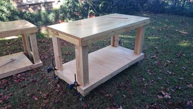 ** La parte más delicada de este diseño de banco está construyendo la plataforma para envolver alrededor de las piernas perfectamente con como poco espacio como sea posible. Creo que la plataforma del mismo tamaño como el Banco se ve muy bien, era realmente mucho trabajo para cortar las piezas para caber alrededor de las piernas y puede fácilmente modificar el marco inferior que se sentó en las piernas (de modo que la plataforma también podría sentarse dentro de las piernas). **