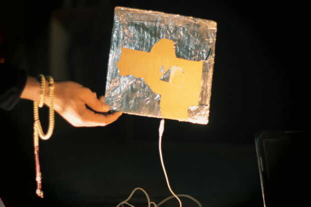 Conexión a tierra cuando el teclado Makey Makey quita un poco de la diversión, como esto a menudo significa que usted extremo para arriba con un alambre a menudo enganchado a su muñeca o en su mano. Por lo tanto, Divya ocurrió la excelente idea de po