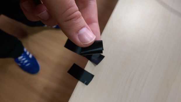 1. Cortar corta trozos de cinta aislante y hacer como en imagen.