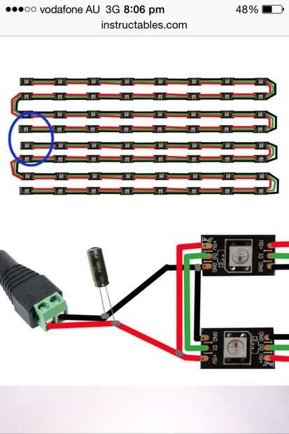 Ahora todos los cables han sido soldados en su tiempo para conectar el condensador, resistor y fuente de alimentación. La fuente de alimentación se conecte al adaptador de corriente, con un cable de tierra y poder ejecutar desde el adaptador. Corte 2 sets de cables de 3 pulgadas, un sistema necesita para ir a corriente y tierra del adaptador, el otro extremo debe soldarse a los otros cables con el condensador. El extremo de los cables del segundo deberá ser soldadas a la primer almohadilla ligera. Para los datos, solde una resistencia a un extremo del cable de salto y el otro conector en el PIN D0 de la Junta MaKey MaKey. Coge otro cable y un extremo al otro lado del cable para el LED y el otro extremo de la resistencia de la soldadura.