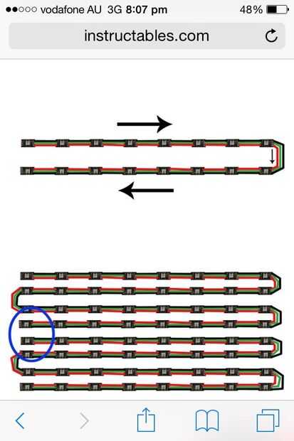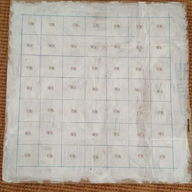 Ahora que su base ha sido contornos, agarra tu Blu-tak y Virar un LED de luz por la red. Tratar de que estas en el centro de cada sección de la red, y estos van a zigzag en todos los ámbitos. ¿Cómo? ¿Ver las flechas pequeñas en el LED cerca del pin? necesitan zigzag para que haya un flujo constante dentro y fuera de las luces. Si se hace incorrectamente, se fundirá la luz.