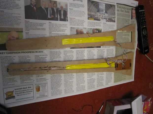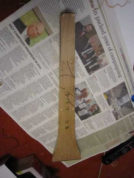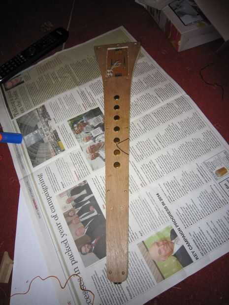 La boquilla situada en la parte superior del instrumento es crítica para el funcionamiento del sistema, así que duplicamos el número de cables va hasta que, al ser paranoico. Utiliza el mismo pasadores hendidos como fin en todas partes, pero montado de con pegamento caliente del derretimiento.
