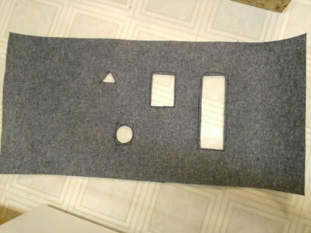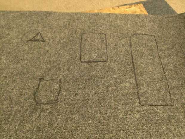 Trazar las formas en la alfombra y asegúrese de que coincidan con los orificios en la pieza frontal de madera.