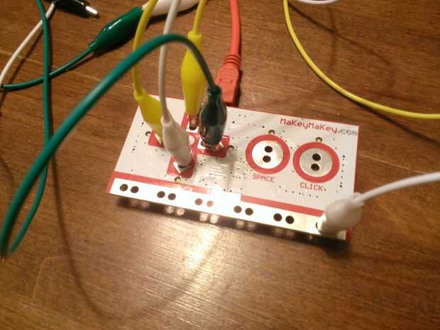 Fije cada sujetador cocodrilo a la Junta makey makey.