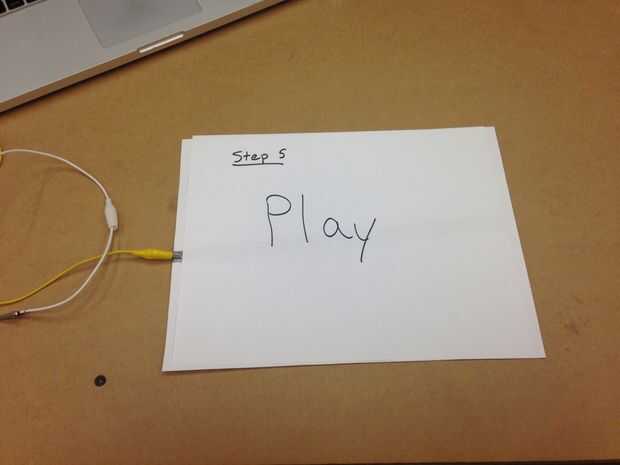 ¡ Mira el video! Suya puede ser diferente, pero la regla de notas bajas, estar cerca de la pinza y notas altas estar lejos del clip todavía debe ser verdadera. Si tienes datos muy entrecortados o sin sentido, debe comprobar las conexiones, reiniciar Makey Makey por volver a subir el código y trate de colorear en la línea de más.