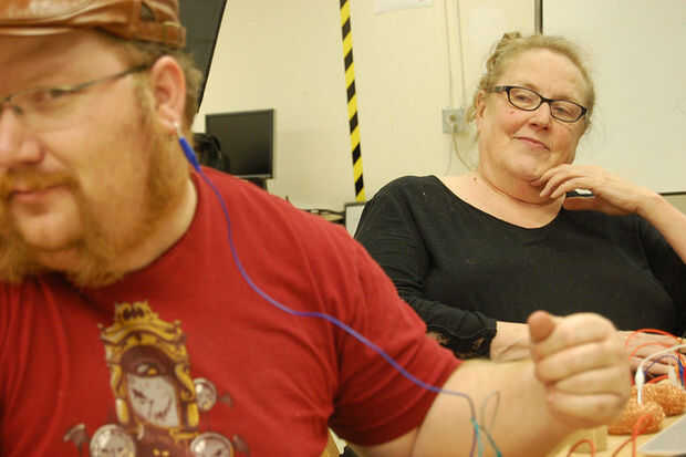También es posible a tierra a través de una pulsera o incluso intentada recortar a mi pendiente. el nivel de señal a través de Makey Makey no es aun perceptible si se ponen las pinzas en la boca.