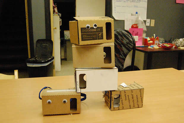 Puede cargar la aplicación de cartón de Google y trate de usar el makey makey para simular golpecitos en la pantalla para lanzar la mini applets dentro, la mayoría quiere un doble clic, Google earth (tap para iniciar/detener del vuelo), photospheres(photo advance)