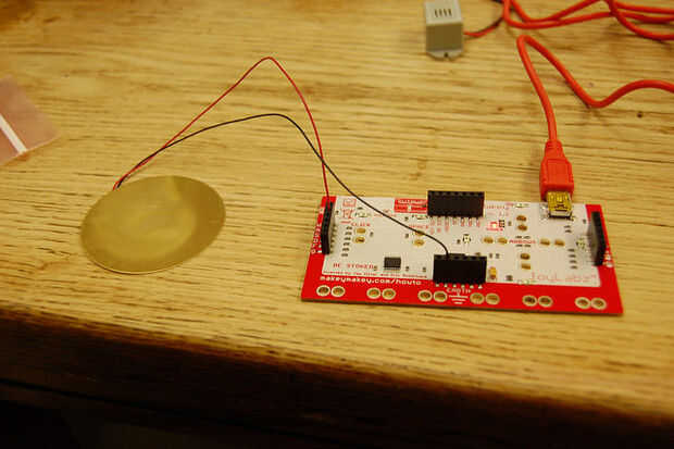 Otro pensamiento en entradas nos encontró ese altavoz piezoeléctrico, también podría ser utilizado para hacer entradas de tap. podría permitir golpear ligeramente sobre una mesa, punch poke o tap destinos mediante el makey makey.