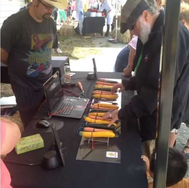 El Piano de Veggie Makey Makey caber el tema musical y la meta era divertirse y hacer que la gente sonría. ¡ Un éxito!