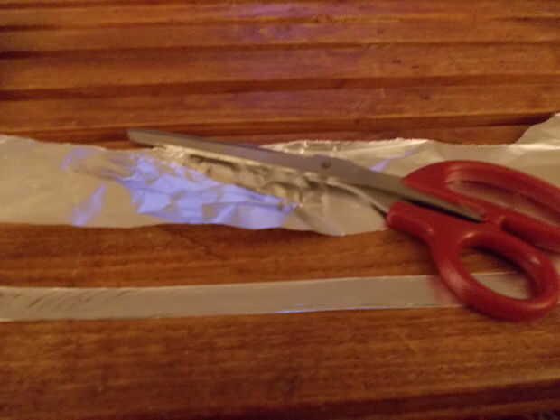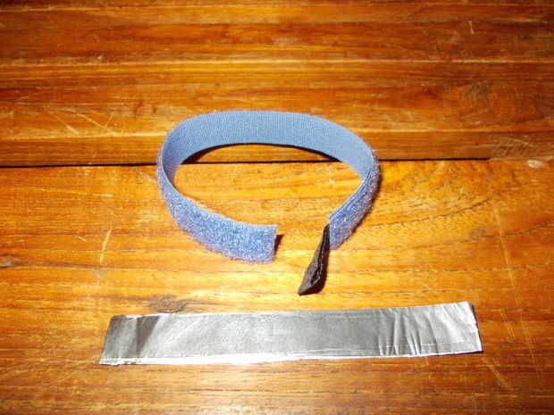 Cortar un trozo de papel de aluminio unas 4 veces como ancho como el Velcro de la correa y doblado por lo que es el mismo ancho, entonces utiliza un regular aguja e hilo para coser en el interior de la correa de Velcro. Era lo bastante grande como para caber en los dedos de los adultos y las muñecas de los niños.