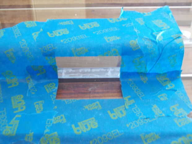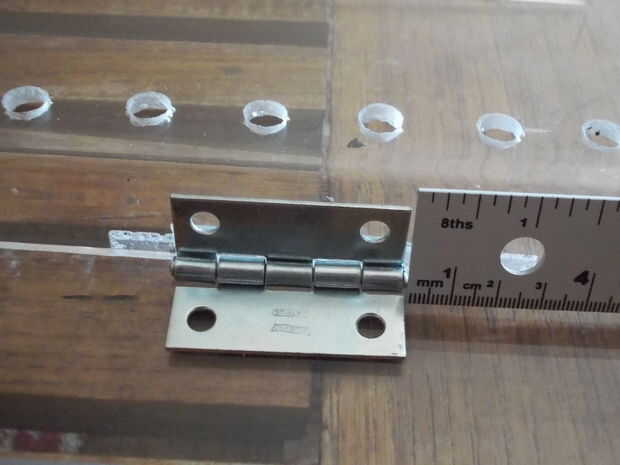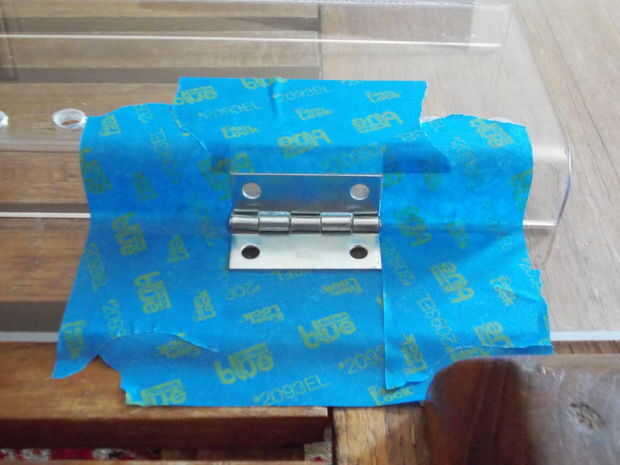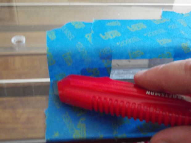 Una vez que ha puesto su cinta en el acrílico, luego retire la bisagra y utilice un cúter para cortar donde se unen las dos piezas de acrílico, la cinta de separación.