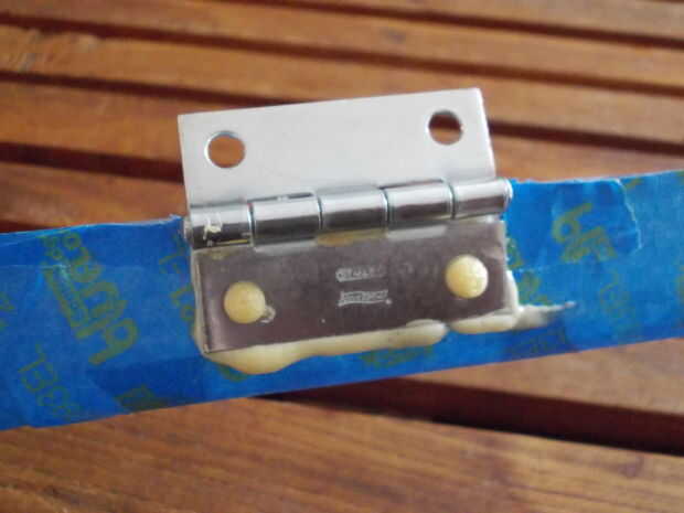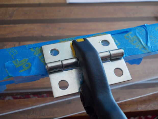 he usado un poco de pegamento gorila en las bisagras y sujeta en su lugar en la parte superior del piano, permitiendo que se sequen durante unas 4-5 horas. Retire la cinta y limpie cualquier pegamento extra después de que se haya secado.
