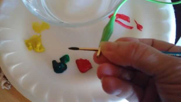 Agarre el cepillo en la férula para hacer una conexión sólida - y luego pintar. Tienes que pintar de forma rápida, con un movimiento de agarre y lanzamiento para obtener ritmo y pulsaciones. Con un poco de práctica intercambiar cepillos hacia fuera, puede conseguir una experiencia agradable de arte poco va.