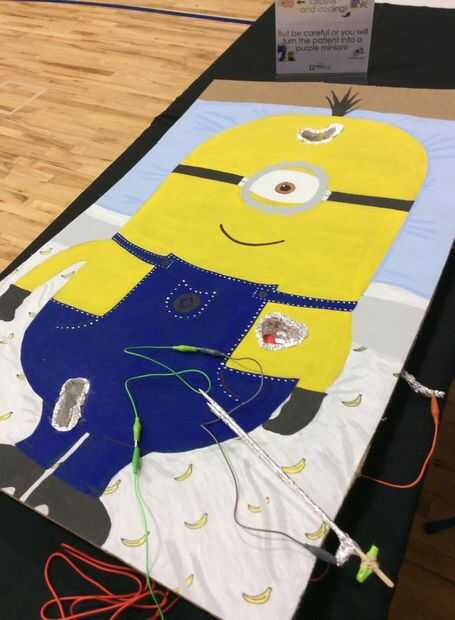 Durante la noche construir MaKey MaKey en Boise del estado biblioteca de la Universidad de Albertsons, asistente y estudiante, Scott Schmader, aprendieron cero para desarrollar este increíble piano. Utilice el manos libres MaKey MaKey tierra pulsera