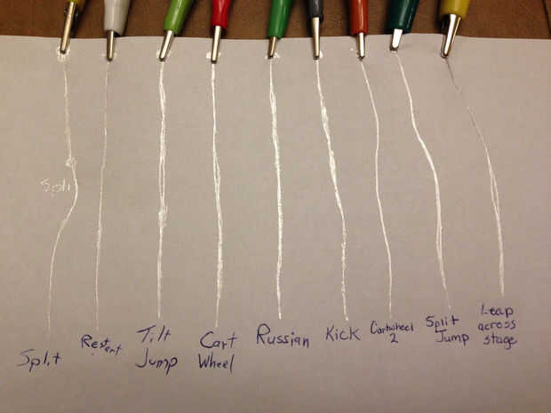 Usted tendrá que hacer un poco de "gestión de datos." Puede ser útil escribir una carta que "mapas" de la etiqueta en cada línea de la tinta - la danza se mueve - a una determinada letra o número. Por ejemplo, podría elegir la letra ' para Split.