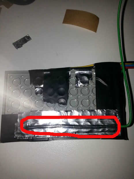 Ahora tira sobre 5 o 6 cm de aislamiento de nuestro pasado cable de núcleo sólido y agregarla a la cinta de aluminio en la parte posterior del controlador lego. Tratar de mantener el cable recto, queremos tener una buena cobertura en la cinta de papel de aluminio con el cable de núcleo sólido.