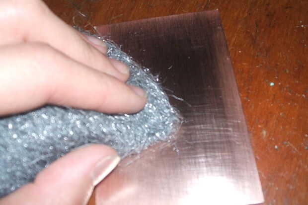 Una vez que tenemos el tablero revestido de cobre se recomienda limpiar el tóner agarre, en este caso, limpiamos con una esponja para lavar las ollas. Después de limpiar el tablero revestido de cobre es necesario para evitar el contacto nuestros dedos con cobre para evitar manchas de grasa, te recomiendo usar guantes de látex será útil más adelante.