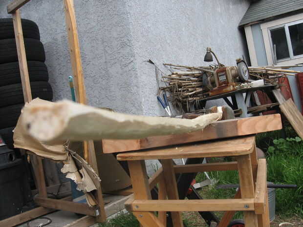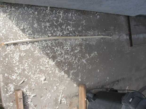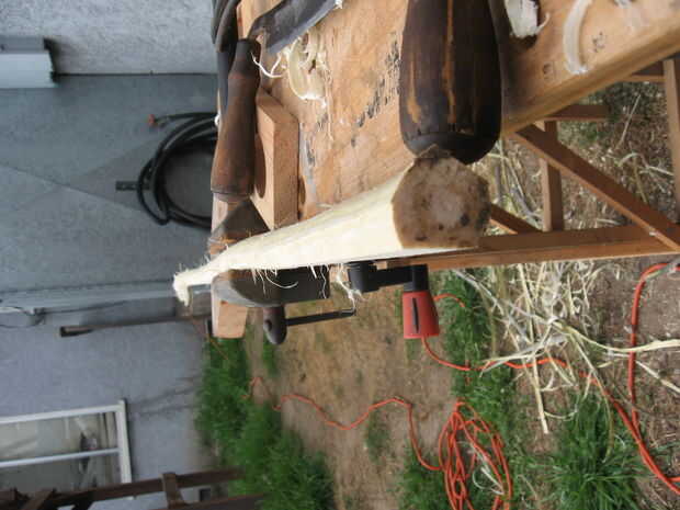 4. utilicé un viejo cuchillo de sorteo para quitar toda la corteza de la madera.