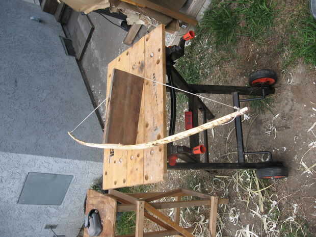 10. déjalo secar durante dos semanas. Había trenzado de hilo de construcción de nylon para la cuerda de mi arco.