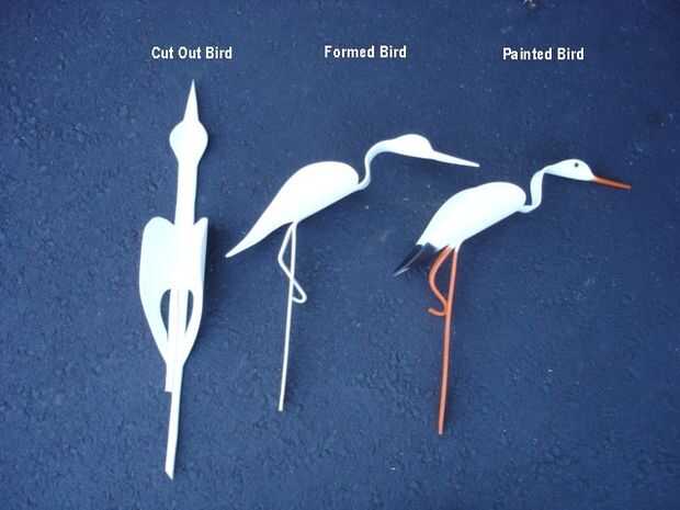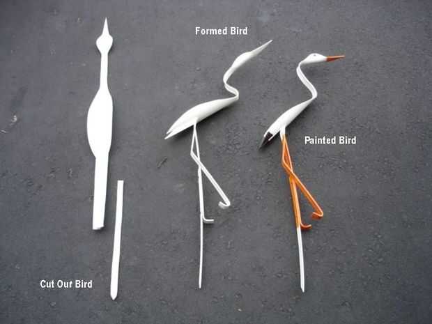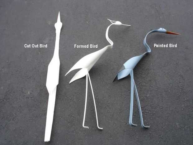 Largo de los años experimenté con diversos diseños. Por ejemplo, la Garza sucedió cuando caminaba en el parque y vi un pie en el pantano. Pensé que era interesante y algo que encajaría en la tubería de 4 pulgadas que estaba usando. Busqué varias fotos en la web y desarrollado un modelo que refleja el pájaro que ha visto en el pantano. El resultado fue un éxito.