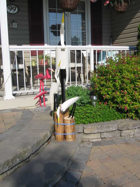 Fueron mis primeros intentos en este, por lo menos, algo tosca. Sin embargo, ya que mantiene en él descubrió algunos de los secretos y consiguió más competente. Cuando regresé a casa seguí en él con el PVC que había comprado en los Estados Unidos Realmente no tengo ninguna expectativa de vender a cualquiera, pero he completado algunos y puso frente de la casa. A mi gente de sorpresa caminando, gustaron y se preguntó si podría hacer algo para ellos. Así comenzó la industria de mi pequeño taller. Más adelante primer año en que fui contactado por los organizadores de la Feria de artesanía Navidad en el Parque Provincial Presqu'ile para ver si estaría interesado presentar algunas muestras de mi trabajo para su adjudicación. Verás, con el fin de mostrar el trabajo en esta prestigiosa muestra uno tiene que tener el trabajo de juzgados y aceptado. Así que tomé algunas de mis aves a la adjudicación y, no sólo fue aceptado, un juez comprado uno de las muestras. Ese año tomé una gran cantidad de mis pájaros al show y vendidos a todos. También produzco varios juegos durante el verano para la venta en la tienda de Faro en el parque.