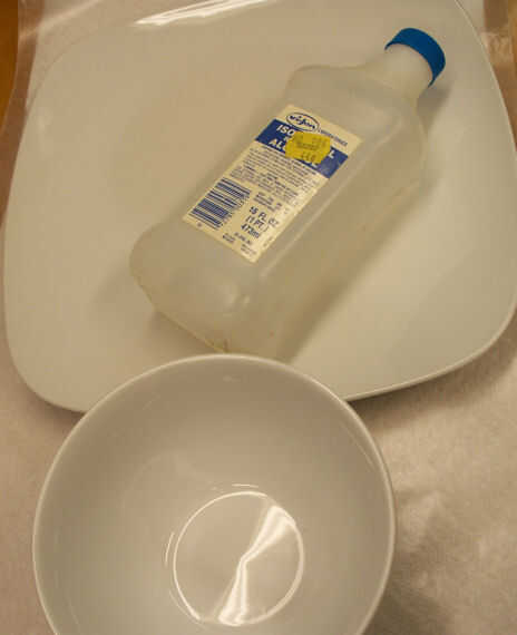Empezar por la placa y el recipiente de lavado o limpieza de la superficie a pintar con alcohol isopropílico.