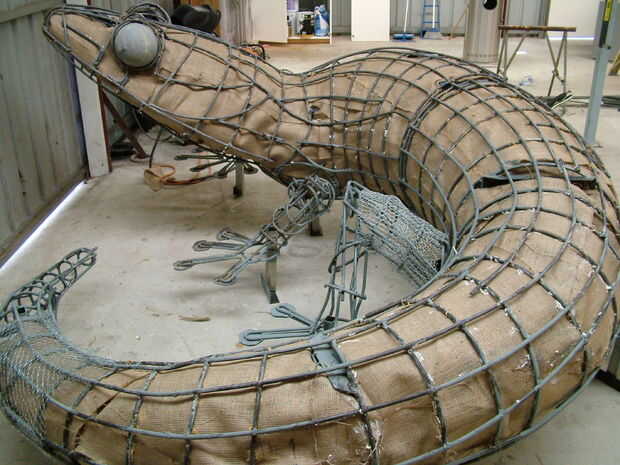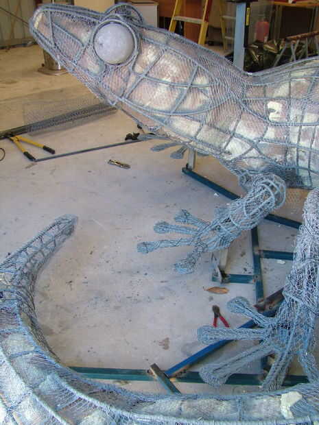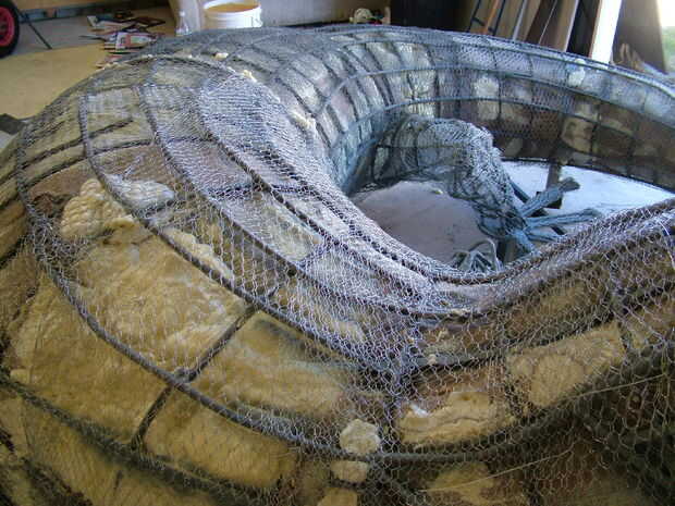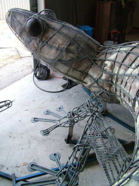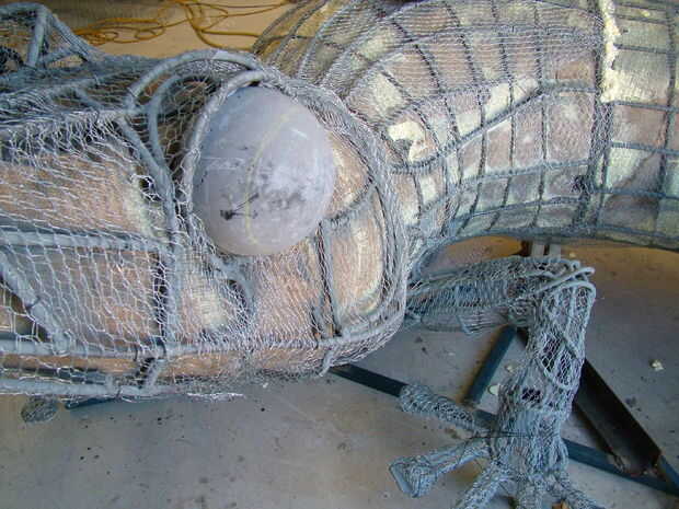 Alambre de pollo fue cosida a la armadura de la vástago de acero. Dispone de globos oculares concreto fundido.